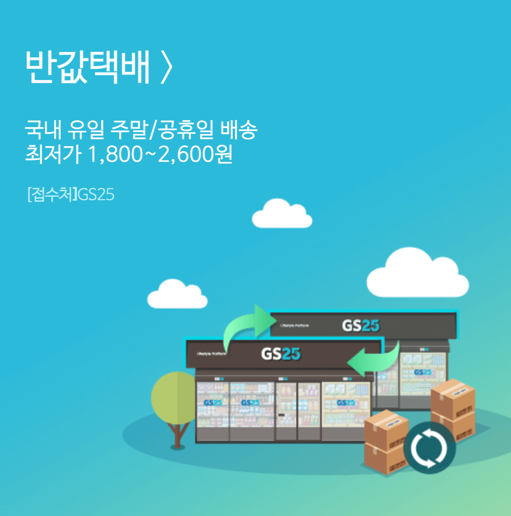 국내 유일 공휴일 배송 가능하며 가장 저렴한 택배서비스입니다. GS25 물류 인프라를 활용한 새로운 배송 서비스입니다.